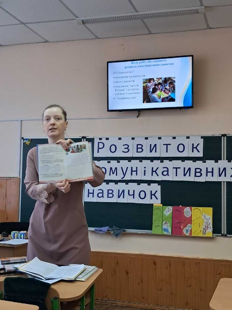 У четвер, 30.01.2025р, учителі початкових класів Мельник О. Г. та Найдюк Н. В. ділились досвідом роботи зі своїми колегами. Мельник О. Г. розповіла про формування ключових компетентностей молодших школярів через впровадження ігрових технологій , а саме через активне використання платформ"Читач", LearningApps та Wordwall на уроках української мови.Продемонструвала дидактичні рухливі вправи "Кмітливі ручки", "Сортувальник" і "Банка".Також показала елементи STEAM-освіти на уроках ЯДС. Найдюк Н. В. представила різноманітні види робіт, які сприяють розвитку комунікативних навичок учнів. Закцентувала увагу на використанні методу "Сторітелінг" як способі передачі інформації через розповідь цікавих історій з використанням кубиків історій, коміксів, інфографіки.