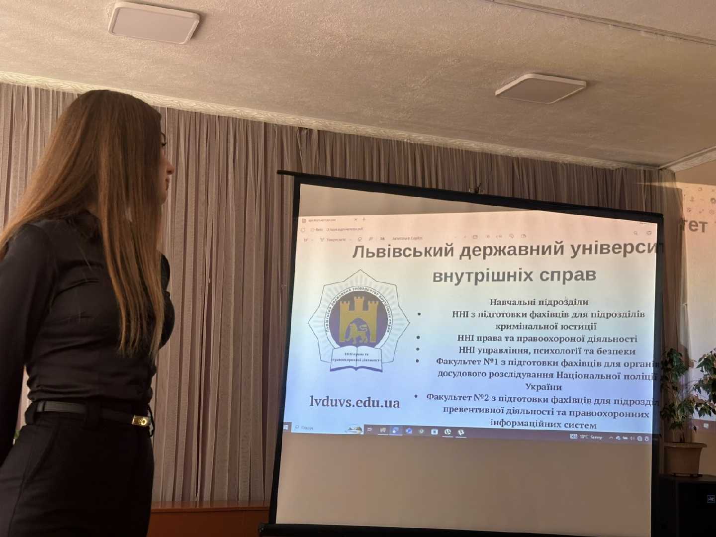 Окрім цього, Янушевська Яна ознайомила учнів із діяльністю закладу, в якому навчається, розповіла про спеціальності, умови вступу, переваги навчання та можливості професійного розвитку, заохочуючи старшокласників обирати Львівський державний університет внутрішніх справ.