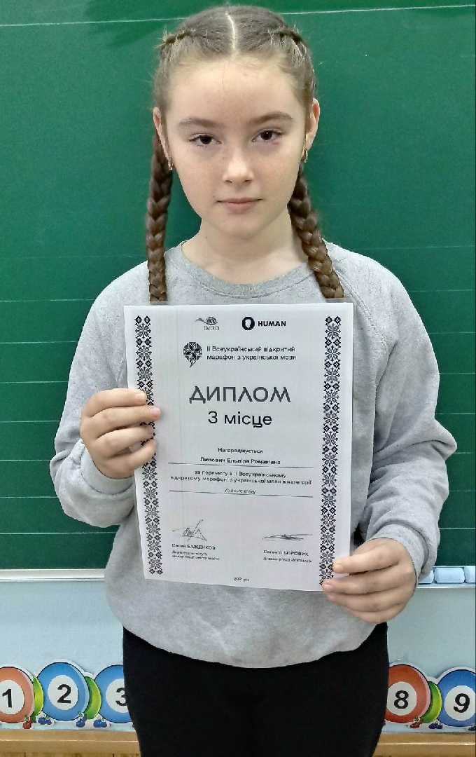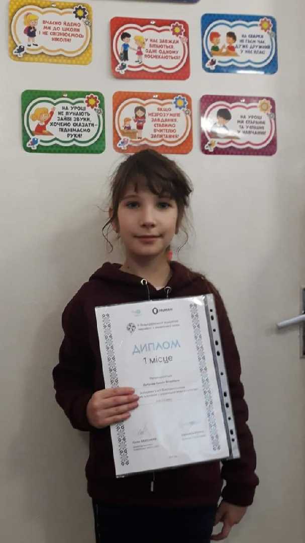 ЛЮЗОВИЧ ЕЛЬВІРУ, ученицю 4-Б класу, за ІІІ місце (учитель Демчук Н. В.).