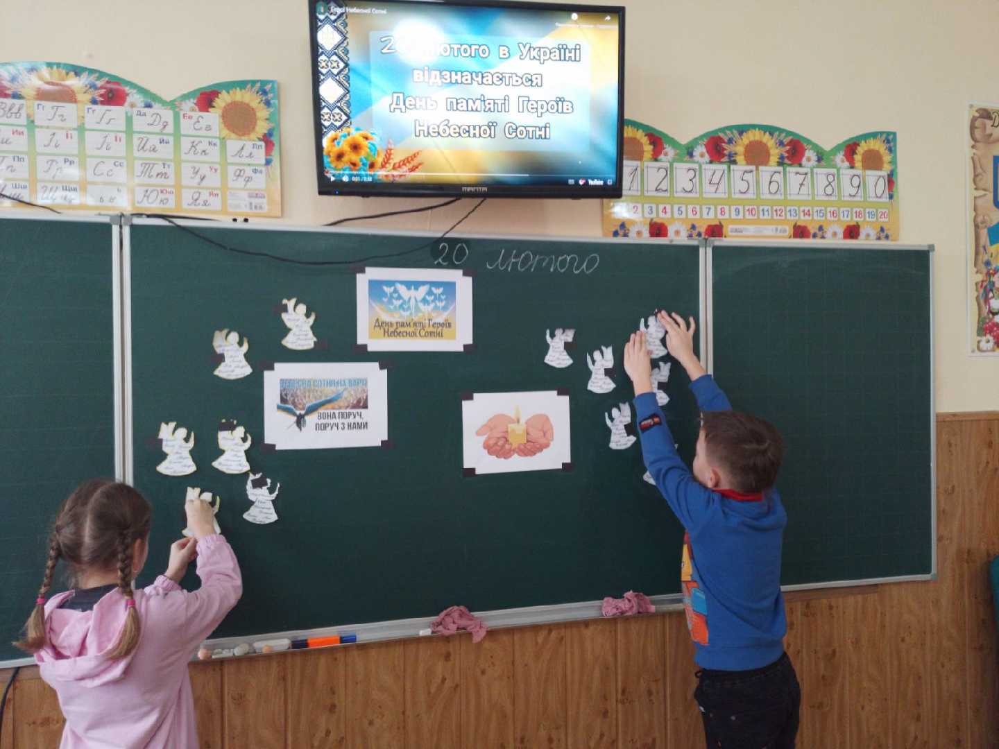 Для учнів 5-11 класів проведено години спілкування "Небесна Сотня - початок нашої боротьби", "Герої не вмирають", Небесна Сотня - Ангели Свободи", "Вони помирали, щоб жила Україна", "Мужність - це про тебе" та ін. Учні розповідали про події тих днів на Майдані, переглядали відео, готували презентації та проєкти, брали участь у дискусії та вшанували пам'ять Героїв Небесної Сотні хвилиною мовчання.