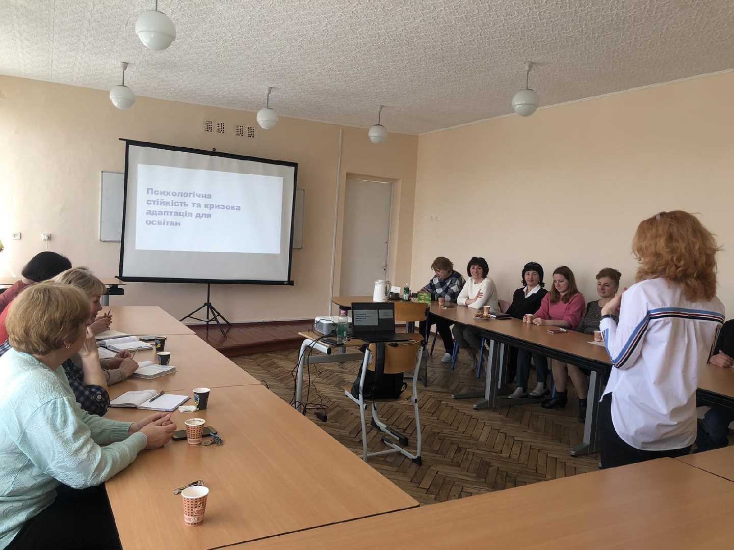 У п'ятницю, 12 квітня, у рамках україно-швейцарського проєкту "Діємо для здоров'я" для педагогів Соснівського ліцею був проведений тренінг "Психологічна стійкість та кризова адаптація для освітян". Зустріч розпочала викладач Львівського обласного інституту післядипломної педагогічної освіти Євгенія Сливка. А проводила тренінг психологиня Юлія Красніхіна. Під час заняття учителі дізнались, які тілесні практики потрібно застосовувати для зняття напруги, стресу. Ознайомились із моделлю "Світлофор" для перевірки стану, у якому перебуваємо, та факторами, які провокують вигорання. Виконували вправи на саморегуляцію (тропічний дощ, вправи на уяву, метелик), працювали з технікою "Дерево-листки". Усі присутні отримали велике задоволення від тренінгу. У кінці зустрічі директор Катарина І. М. подякувала нашим гостям.