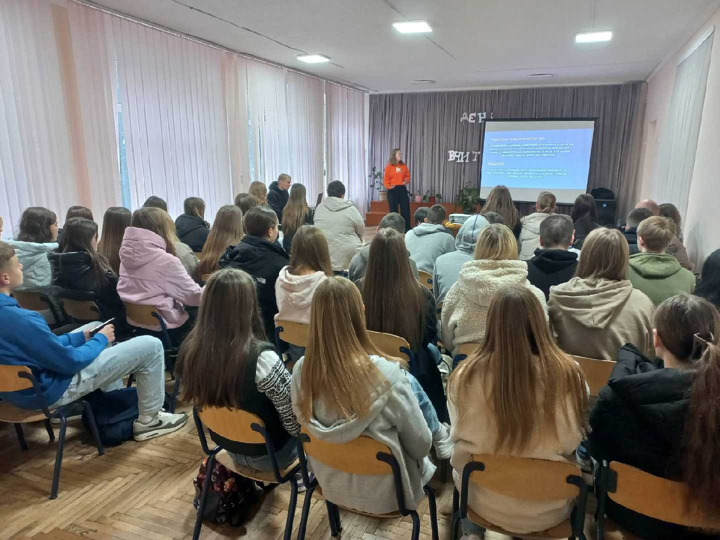 25 жовтня члени Шкільного Містечка організували профорієнтаційну зустріч для учнів 10-11 класів зі студенткою Української академії лідерства Тамарою Фоменко. Старшокласники слухали лекцію "Як зрозуміти себе, усвідомлено приймати рішення та брати відповідальність за себе та майбутнє України". Тамара Фоменко продемонструвала презентацію про особливості навчання в Українській академії лідерства.