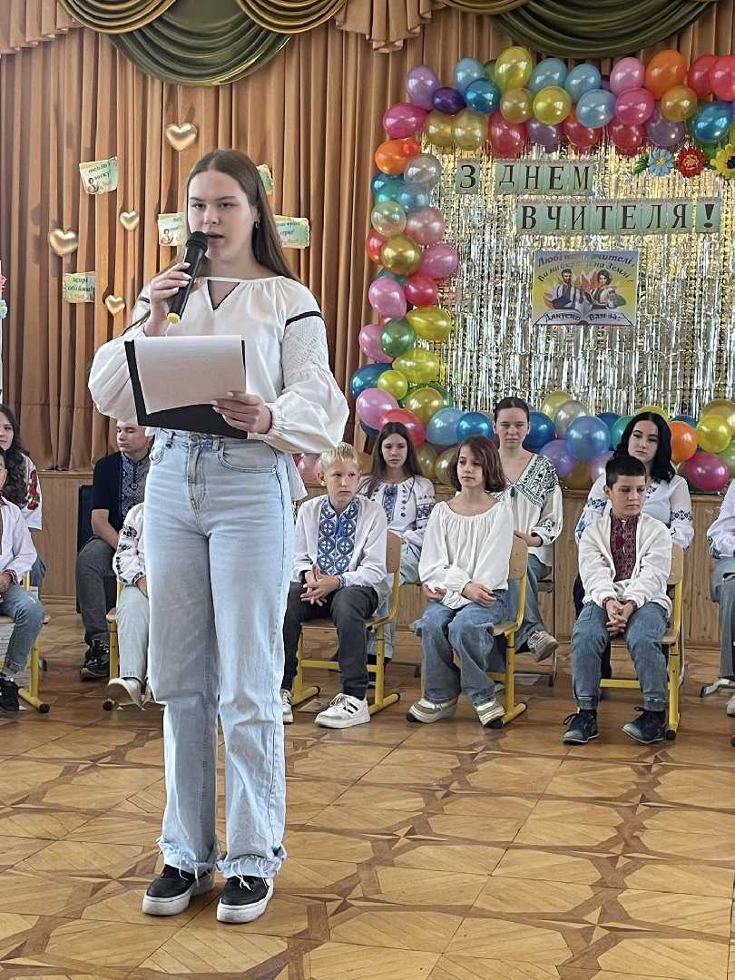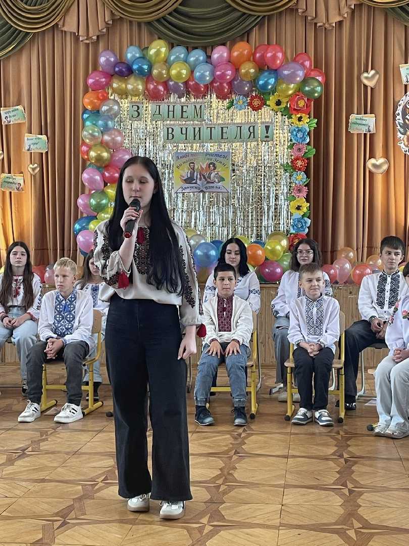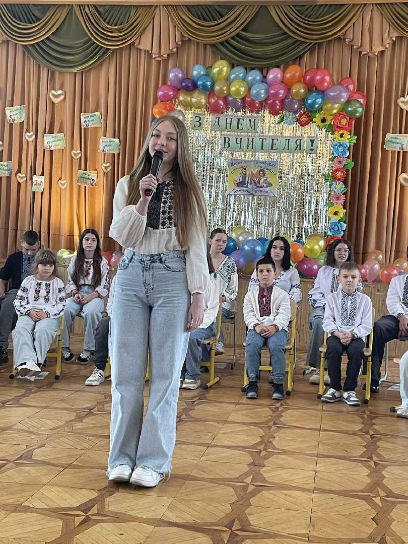 На сцені блищали таланти учнів 4 та 9 класів, які подарували всім присутнім справжню феєрію емоцій: щирі пісні, проникливі вірші та теплі слова вдячності. Кожен виступ був наповнений світлом, добром і щирою любов’ю до наших дорогих педагогів.