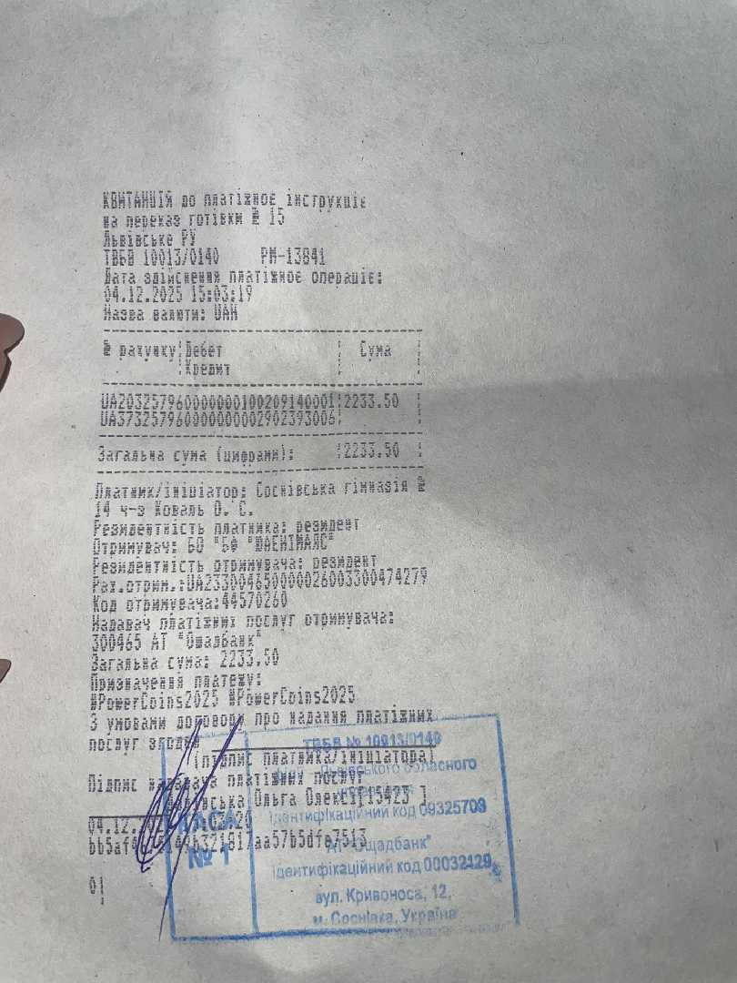 Наша гімназійна спільнота зібрала 2233,50 грн і передала їх на підтримку тварин, які постраждали від війни.