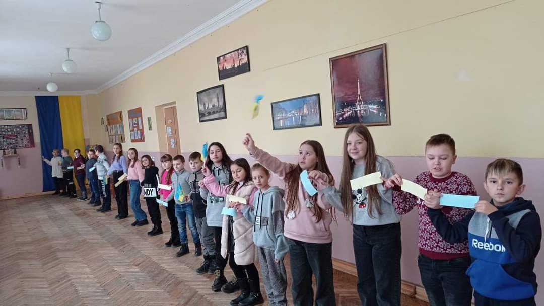 Це сьогодні довели учні 5 класу разом з класним керівником Сподарик Н.Г. провівши виховну годину з нагоди Дня Соборності України. Діти зворушливо розповідали вірші, співали гімн та утворили символічний "живий ланцюг", що об'єднує нашу неньку Україну.