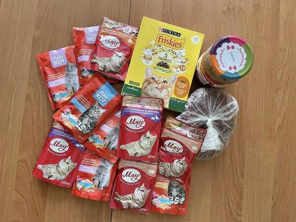 Зібраний корм передали Сінкіній Тетяні Андріївні, яка з любов’ю та великим серцем дбає про вуличних котиків та песиків нашого міста.