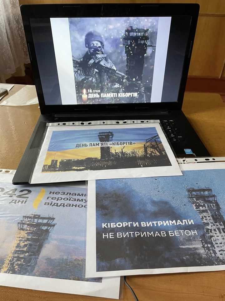 16 січня у школі було проведено виховний захід (педагог-організатор Михно Н.І.) присвячений Дню пам‘яті кіборгів. Учні 8-10 класів, переглянули презентацію, відеоролики про бійців та вшанували пам’ять наших героїв.
