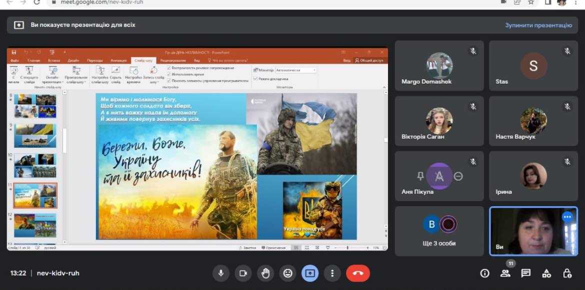 Школярі переглянули презентації, тематичні відео,пригадали знакові події цього року, щасливі митті визволення територій, виконали державний гімн України, молитву «Боже Великий єдиний нам Україну храни» ????????????????????????????️