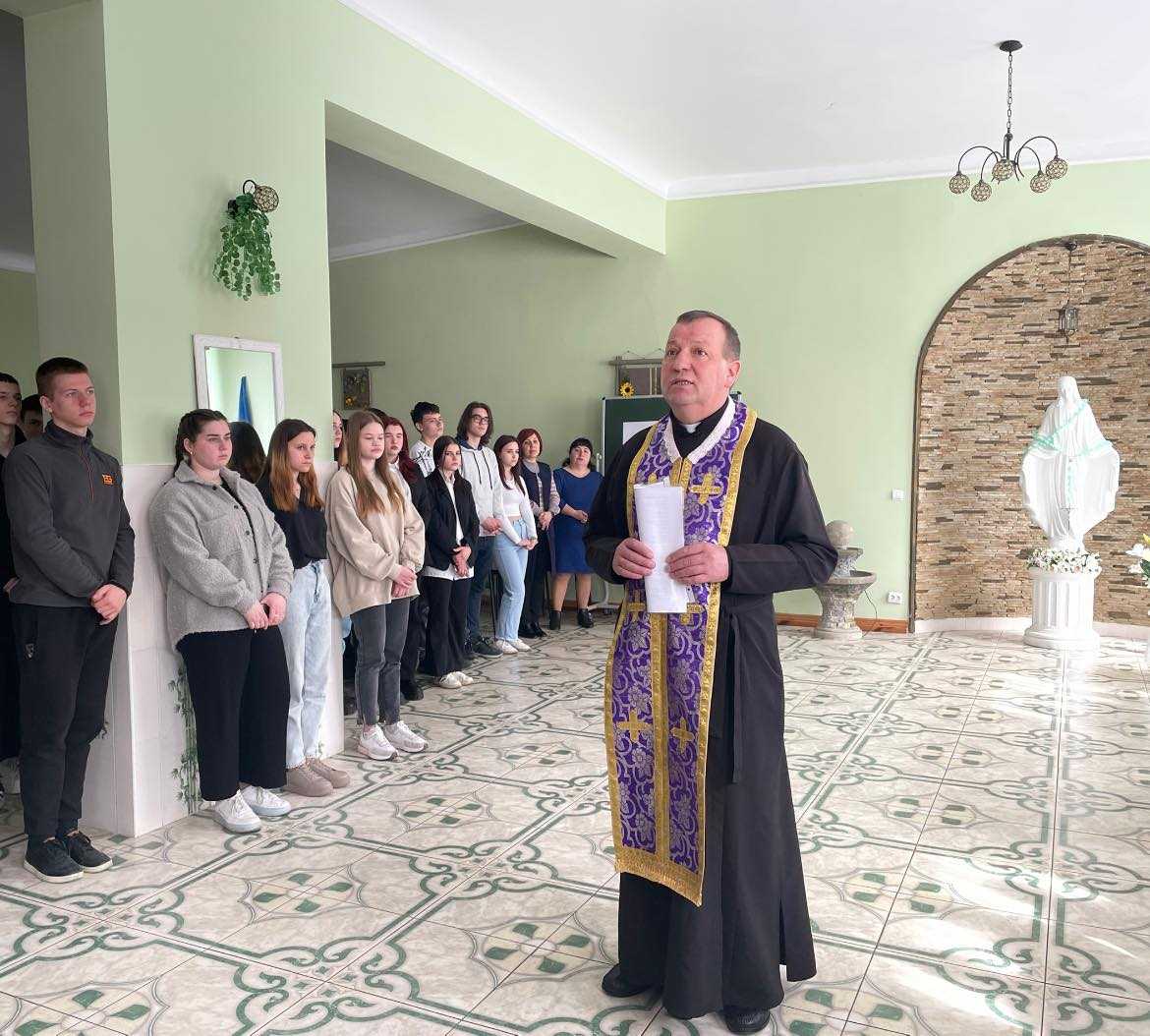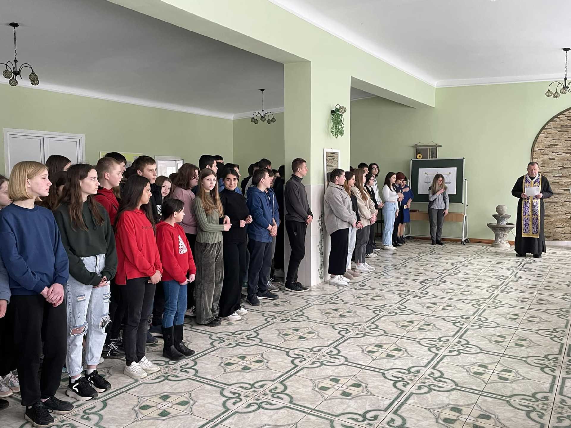 Настоятель храму Верховних Апостолів Петра і Павла, о. Зеновій поспілкувався з учнями про важливі християнські чесноти -покору та смирення, а на завершення поблагословив та побажав веселих весняних канікул , повернутись до школи в позитивному настрої і гарно навчатись.