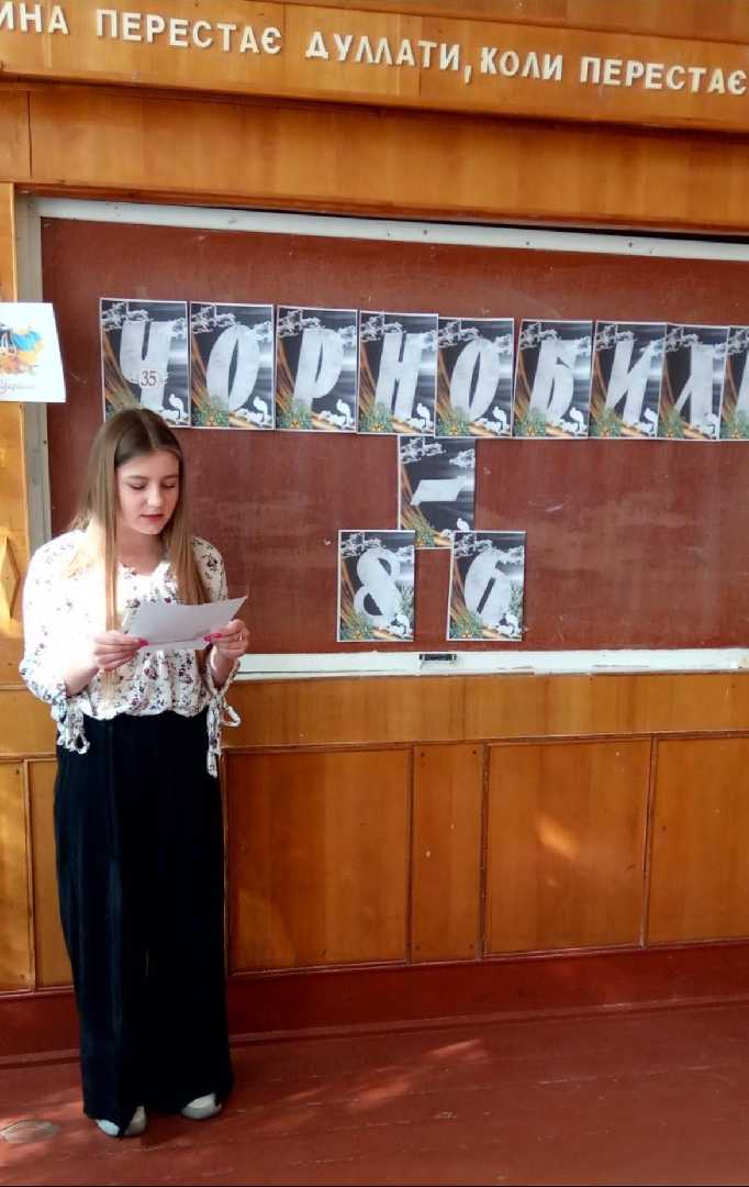З учнями 8 класу, класний керівник Г.І.Гібляк провела виховну годину «Чорнобильська трагедія-біль України»