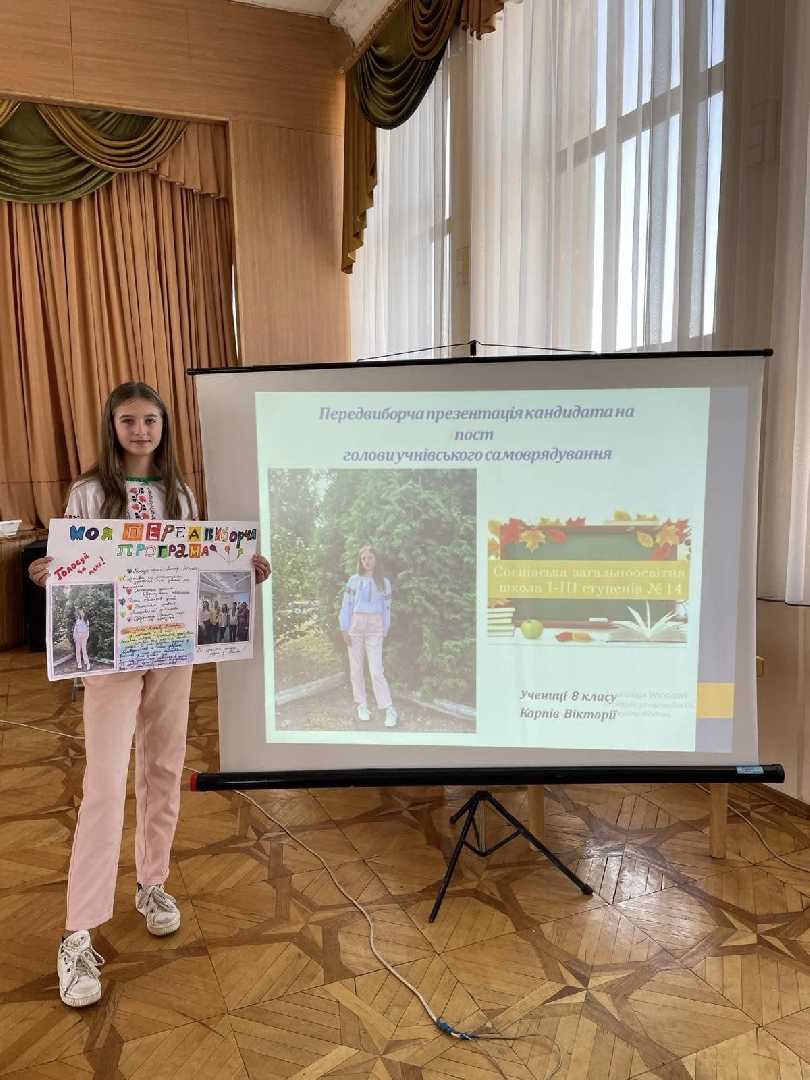 Напередодні виборів учні на посаду голови, ознайомили 6-11 класи зі своїми передвиборчими програмами , планами дій на найближчий час.