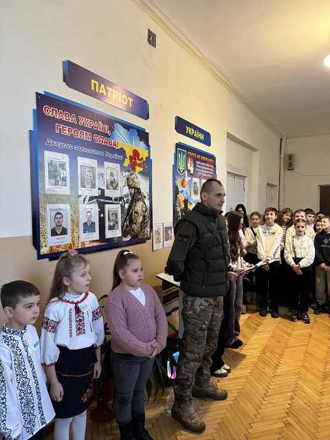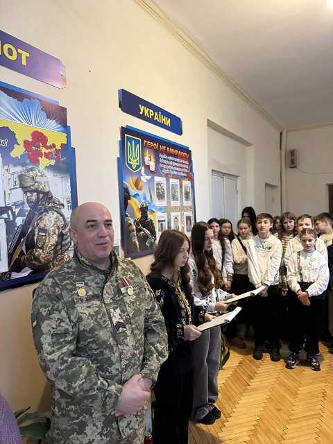 Ігор Кантор, Андрій Шевчук, Михайло Янчин. Хлопці, які перебувають зараз на реабілітації, поділилися зі школярами своїм досвідом стійкості та відваги, самовіддачі та служіння народу України. Кожне слово торкалося серця і душі.