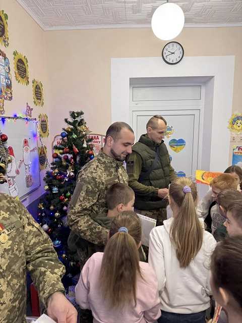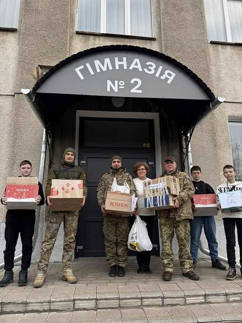 Гімназисти щиро подякували воїнам за те, що захищають наші мрії і життя, подарували малюнки і теплі обійми, передали своїх миколайчиків для ЗСУ, які напередодні свята підготували для захисників.
