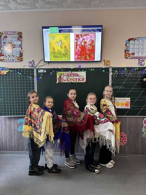 Педагоги провели з гімназистами бесіди про особливе вбрання українок - хустку. Діти із захопленням розповідали про родинні традиції, повʼязані із хусткою.