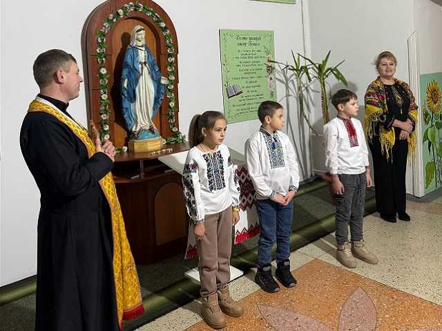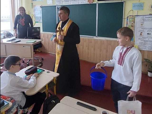 Сьогодні отець Михайло Микита, священник Угкц Владичиці України, поблагословив учнів, вчителів та працівників закладу освіти, провів спільну молитву та окропив йорданською водою усі кабінети та будівлі.