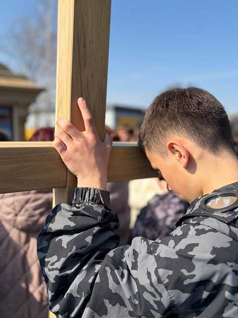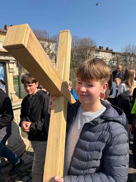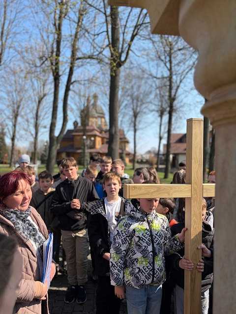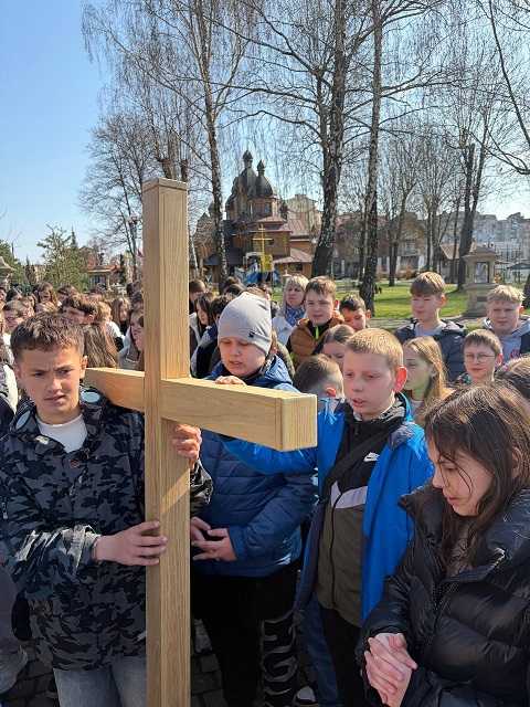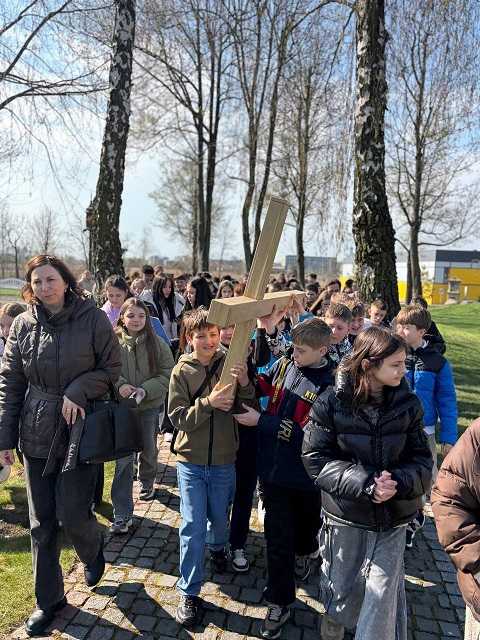 Учні разом із вчителями несли хрест та складали молитву на кожній стації.????
