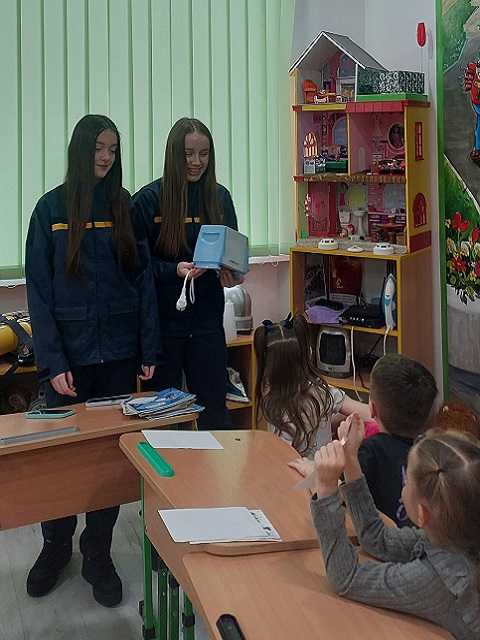 Юні рятувальники-пожежники (Ангеліна Кіс, Ліза Гринів) підготували для учнів 1-4 класів пам'ятки "Правила поводження з вогнегасником".