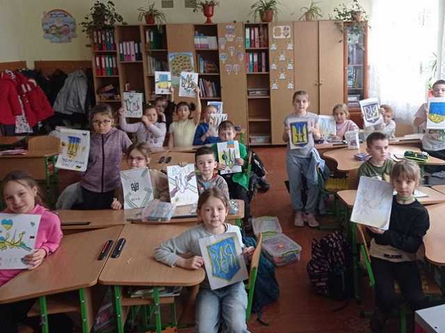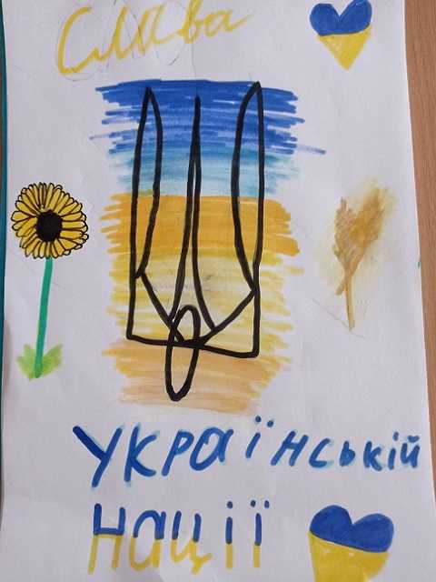 Під час уроків образотворчого мистецтва гімназисти створили яскраві малюнки та оригінальні поробки, на яких зобразили Державний Герб України.