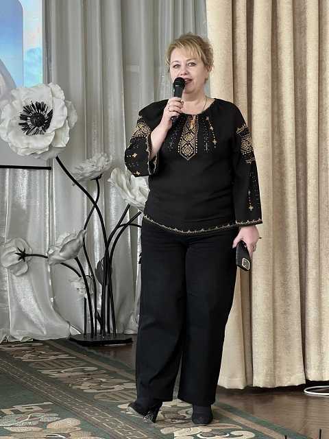Руслана Верескун. Вона зазначила, що сцена гімназії, не така, як у театрі, але саме тут діти отримують перший досвід виступів та розвитку талантів.