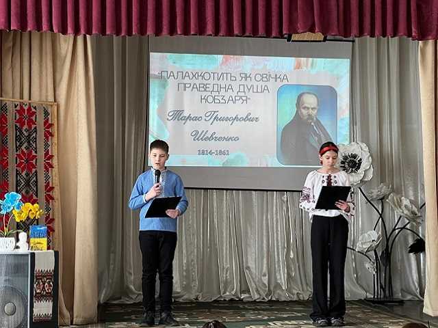 Пройти життєвими шляхами Великого Кобзаря запропонували учні 6-А класу та класний керівник Ореста Ігнатюк, асистент учителя Надія Вінчковська, підготувавши літературно-музичну композицію під назвою «Палахкотить, як свіча, праведна душа Кобзаря».