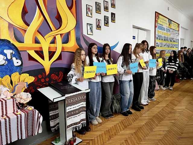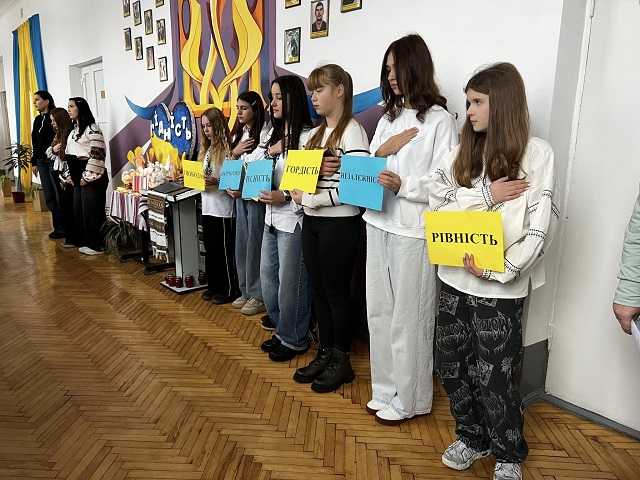 "Герої не вмирають, доки ми пам’ятаємо про їхню жертовність" - з такими словами звернулася до гімназистів Наталія Футрук, заступник директора. День Гідності та Свободи - це не просто історія, не тільки памʼять, це наша ідентичність, наша гордість і наш шлях до вільного європейського майбутнього.