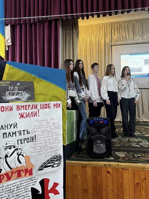 29 січня учні 9-А та 9-Б класів Гімназії №2 під керівництвом вчителя історії Ольги Хавко провели інформаційний дайджест до Дня пам’яті Героїв Крут «Крути: 1918–2026 рр. Пам’ять, що триває»