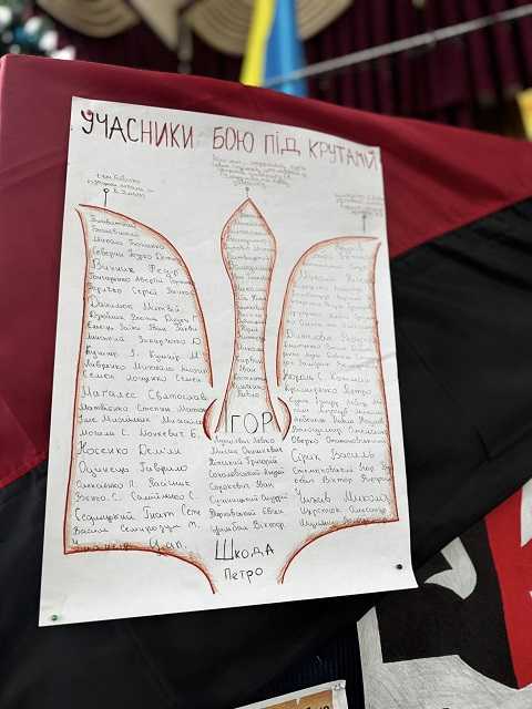 Сьогодні поруч із іменами Героїв Крут ми з вдячністю згадуємо й сучасних Захисників і Захисниць України — воїнів, які так само мужньо боронять нашу державу, нашу свободу і наше майбутнє. Вони продовжують сторінки тієї ж Книги — Книги боротьби за незалежність.????????