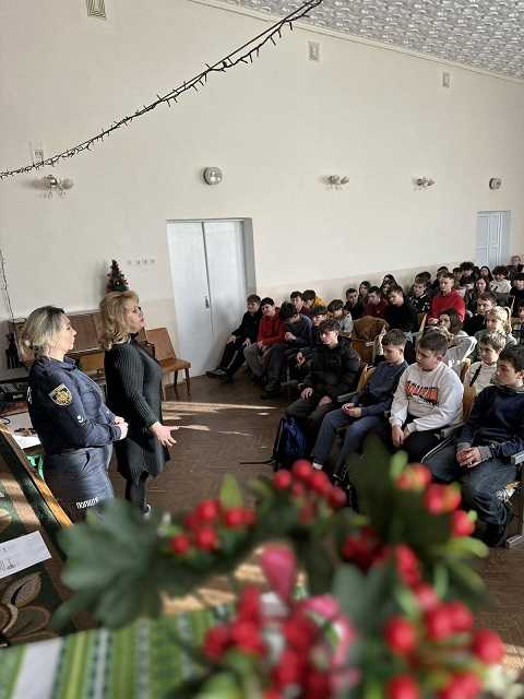Під час спілкування з учнями Ірина Степанівна опрацювала постанову Кабінет Міністрів України «Про затвердження переліку небезпечних предметів і речовин, з якими особам заборонено перебувати на території та в приміщеннях загальної середньої освіти».