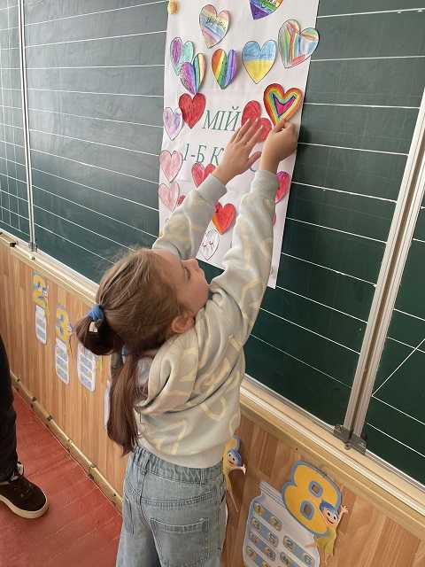 Кожен учень приклеїв сердечко з добрим побажанням для своїх однокласників. Так діти створили символ класу — спільне серце, наповнене теплом, щирістю та підтримкою.