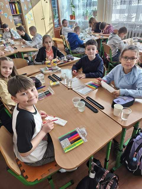 Сьогодні учні 6-Б класу разом з учителем математики Наталія Футрук вивчали геометричні фігури на прикладі символів писанки.