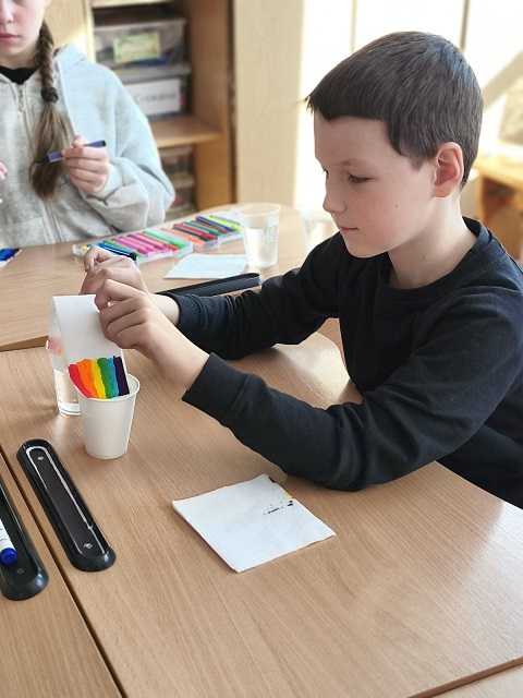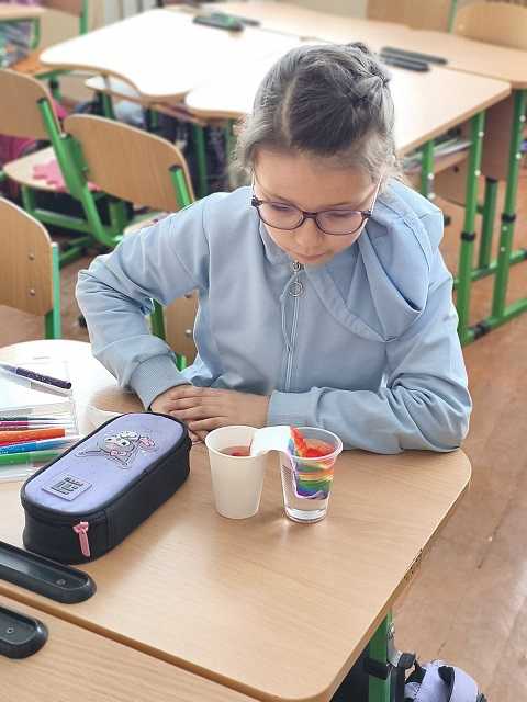 Сьогодні на уроці «Наука в дії» наші четвертокласники проводили цікавий експеримент «Веселка».