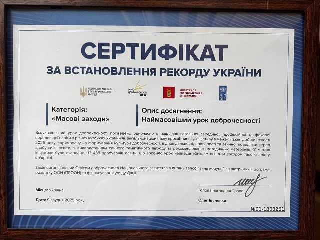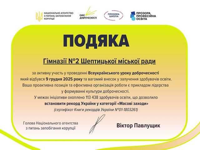 Колектив нашої гімназії долучився до встановлення рекорду України у категорії «Масові заходи» в межах Тижня доброчесності.
