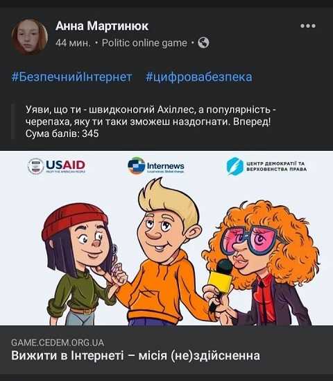Сьогодні учні 2 школи взяли участь у грі "Вижити в Інтернеті - місія (не)можлива" та конкурсі "Безпечний Інтернет 2.0" на сайті "На урок", де продемонстрували високі знання з правил поведінки в мережі та інформаційної грамотності.