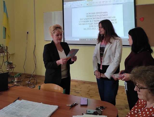 На засіданні педагогічної ради було схвалено Освітню програму закладу на 2022-2023 та 2023-2024 н.р., оскільки продовжується реформування освіти і наші четвертокласники стають учнями базової школи та продовжуватимуть навчатися в Новій українській школі. Саме ці освітні виклики, особливо в умовах воєнного стану, вимагають нових підходів та рішень, поглядів та бачень. Від нас, освітян, залежатиме те, які предмети і з якою кількістю годин вивчатимуть діти.