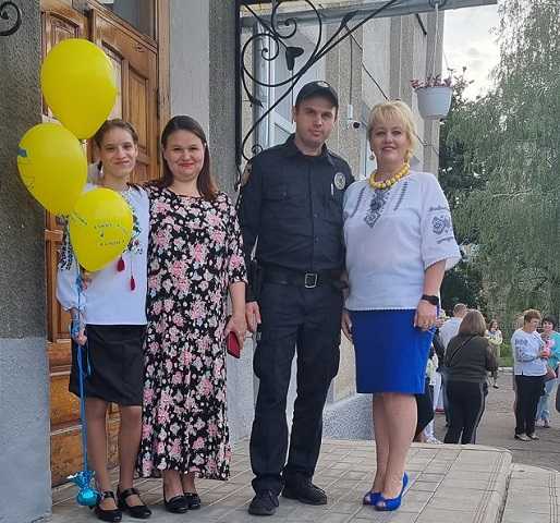 Поліцейський ювенальної превенції залучив до акції " Відведи дитину до школи" ученицю з числа ВПО та поспілкував зі школярами про їх безпеку та поведінку.