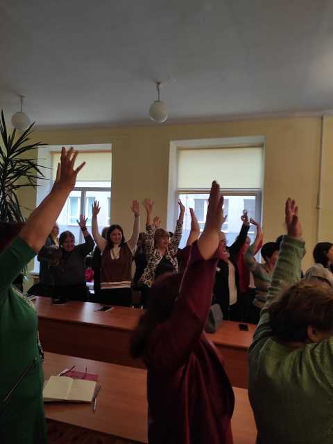 Забезпечити школярам дієвий психологічний комфорт, знизити рівень страху, подолати стресові ситуації під час оголошення сигналу " Повітряна тривога", а також емоційно налаштуватися на урок - головні завдання тренінгу-практикуму для педагогів, який провели практичний психолог Ольга Коліда та соціальний педагог Оксана Качур. Учителі мали змогу на власному досвіді випробувати різні види технік, які можна застосовувати під час проведення "психологічної хвилинки" з учнями.