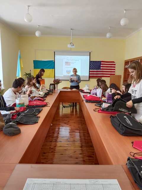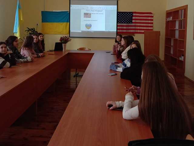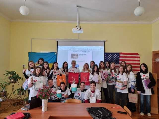 Руслана Верескун роздала учасникам проєкту сувеніри та прочитала листа від куратора Pen Pal Project і викладача Montclair State University