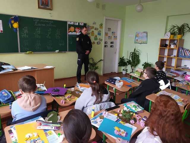 Інспектор роз’яснив дітям алгоритм дій під час сигналу «Повітряна тривога», правила поводження з вибухонебезпечними предметами.
