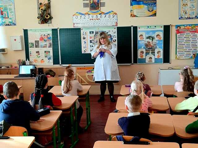 Пані Регіна поділилась з дітками особливостями своєї професії, розповіла про правила гігієни, профілактику коронавірусу та ін. Малеча з захопленням досліджувала вміст медичної аптечки, учні спробували надати одне одному першу домедичну допомогу.