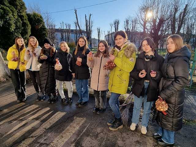Асоціація квіткових виробників Нідерландів та України надіслала закладу тюльпани, гіацинти, крокуси, нарциси та інші цибулини квітів, а працівники та школярі долучилися до їх висадки на клумбах.