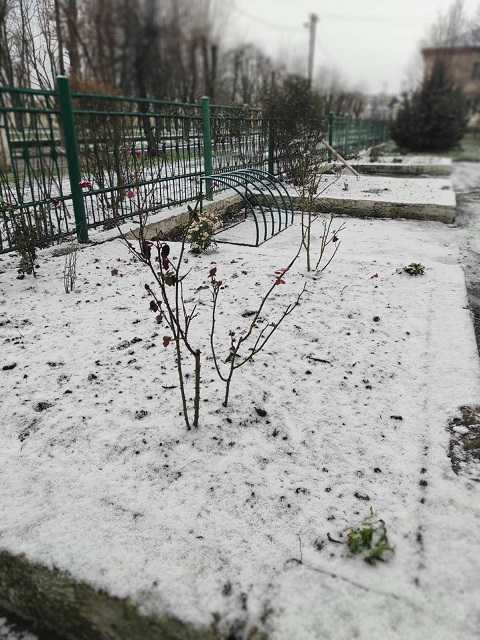 Учора, коли висаджували квіти, світило яскраве сонечко, а сьогодні легкий сніг накрив їх своєю теплою ковдрою і зігріває для яскравого цвітіння.