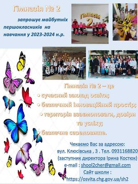 Запрошуємо майбутніх першокласників на навчання у 2023-2024 н.р. у Гімназію №2