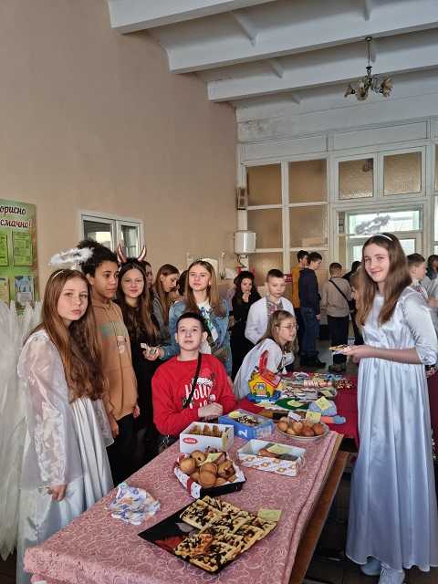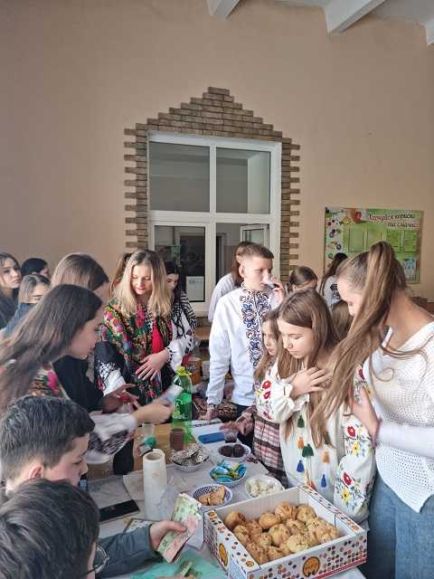 Сьогодні учні та батьки 5 - 9 класів ярмаркували для підтримки ЗСУ. У шкільній їдальні було стільки смаколиків, що очі розбігалися.