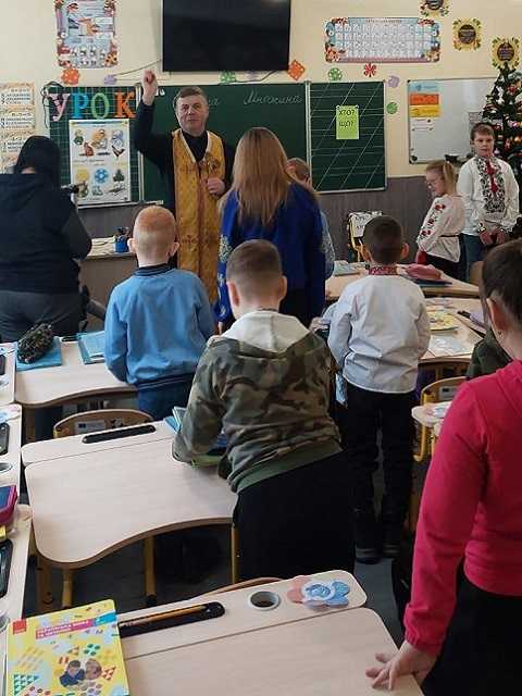 Діти разом зі своїми вчителями, директором Руслана Верескун , учителем християнської етики Леся Кавецька та отцем Михайлом просили перемоги для України.