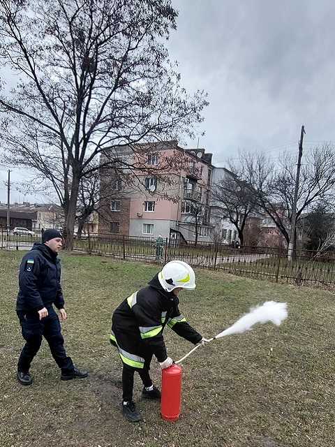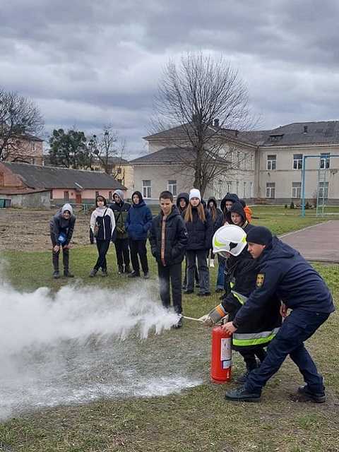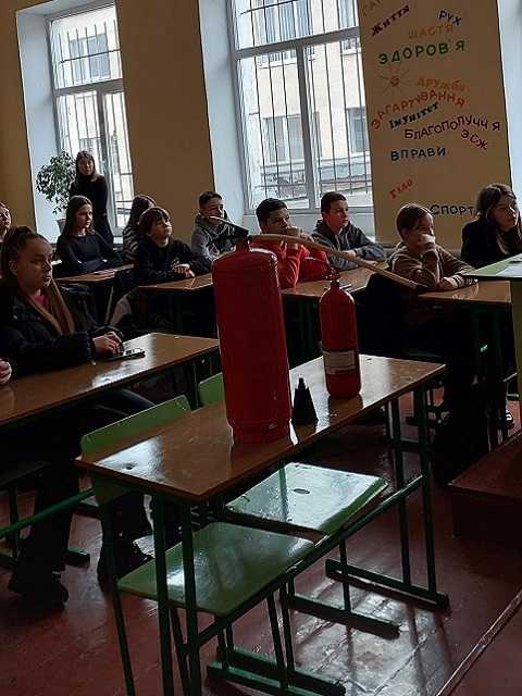 Усі учасники заняття із зацікавленістю розглядали вогнигасники, уважно слухали презентацію та ставили багато запитань.