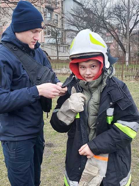 Усі охочі під контролем рятувальників-пожежників одягнули професійну форму та гасили уявну пожежу вогнегасником.????????