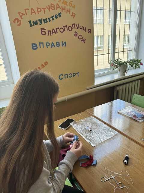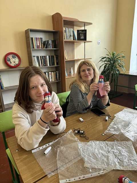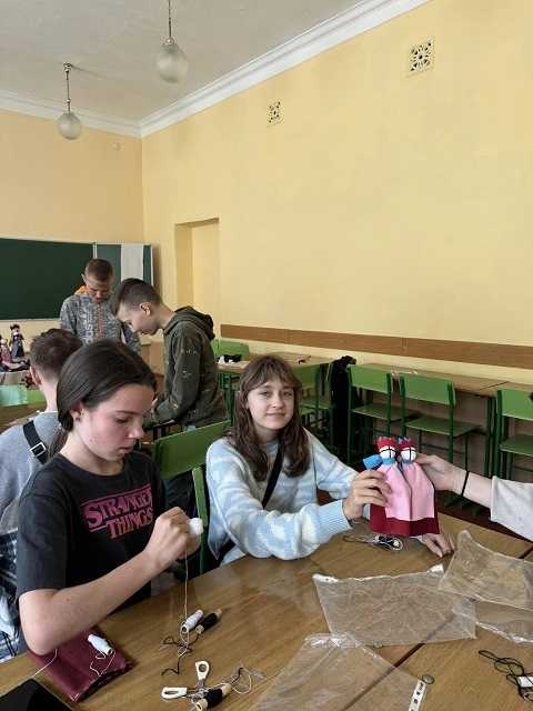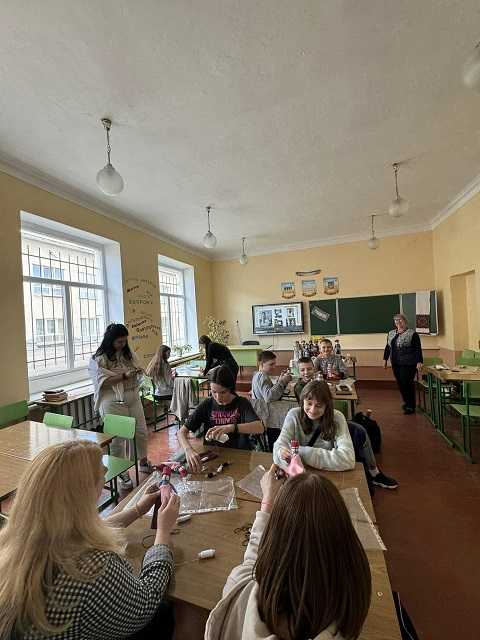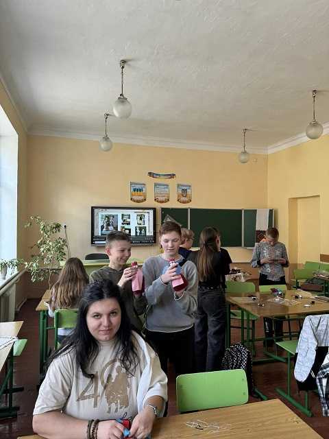 Учні 7-Б, 5-А та 6 класів із захопленням виконували настанови майстрині та наввипередки хизувалися готовими виробами перед директоркою Гімназії Руслана Верескун, заступником директора Наталією Футрук та завідувачем шкільною бібліотекою Anastasia Dats'ko, які теж випробували свої вміння на цьому майстер - класі.