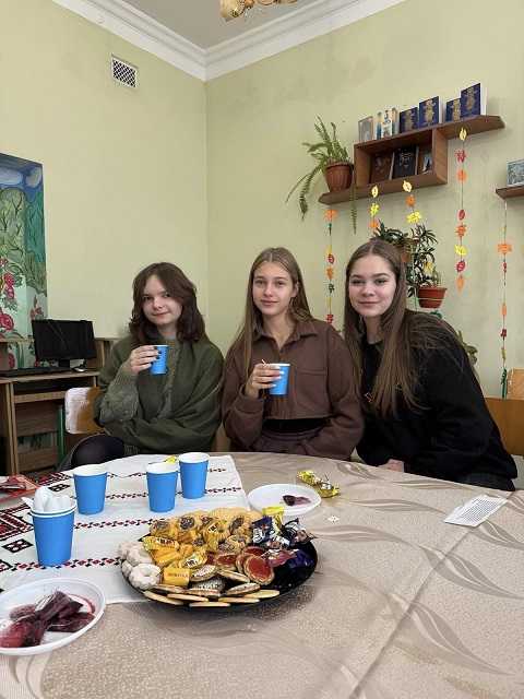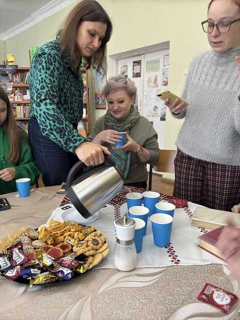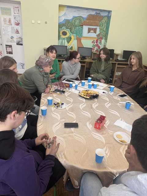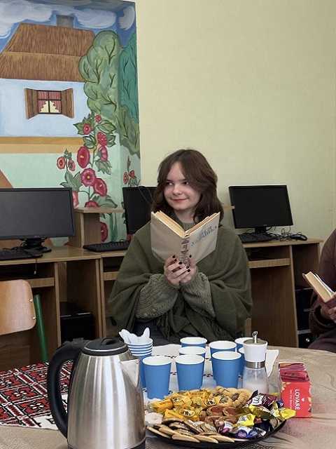 Завідувачка бібліотекою Анастасія Збаражська, учні 9-А класу, учитель зарубіжної літератури Наталія Романків смакували художнім словом з горнятком запашного чаю та смаколиками, у компанії віршів, що оживають і знаходять відгук у серцях.