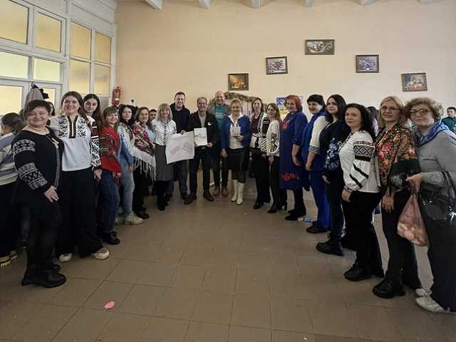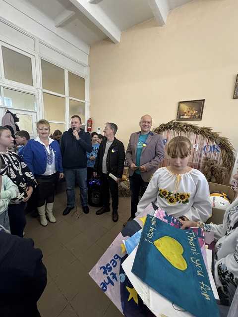 Усі радо зустрічали гостей, спілкувалися, дарували обійми, дякували за турботу, вручали малюнки та листівки для волонтерів.