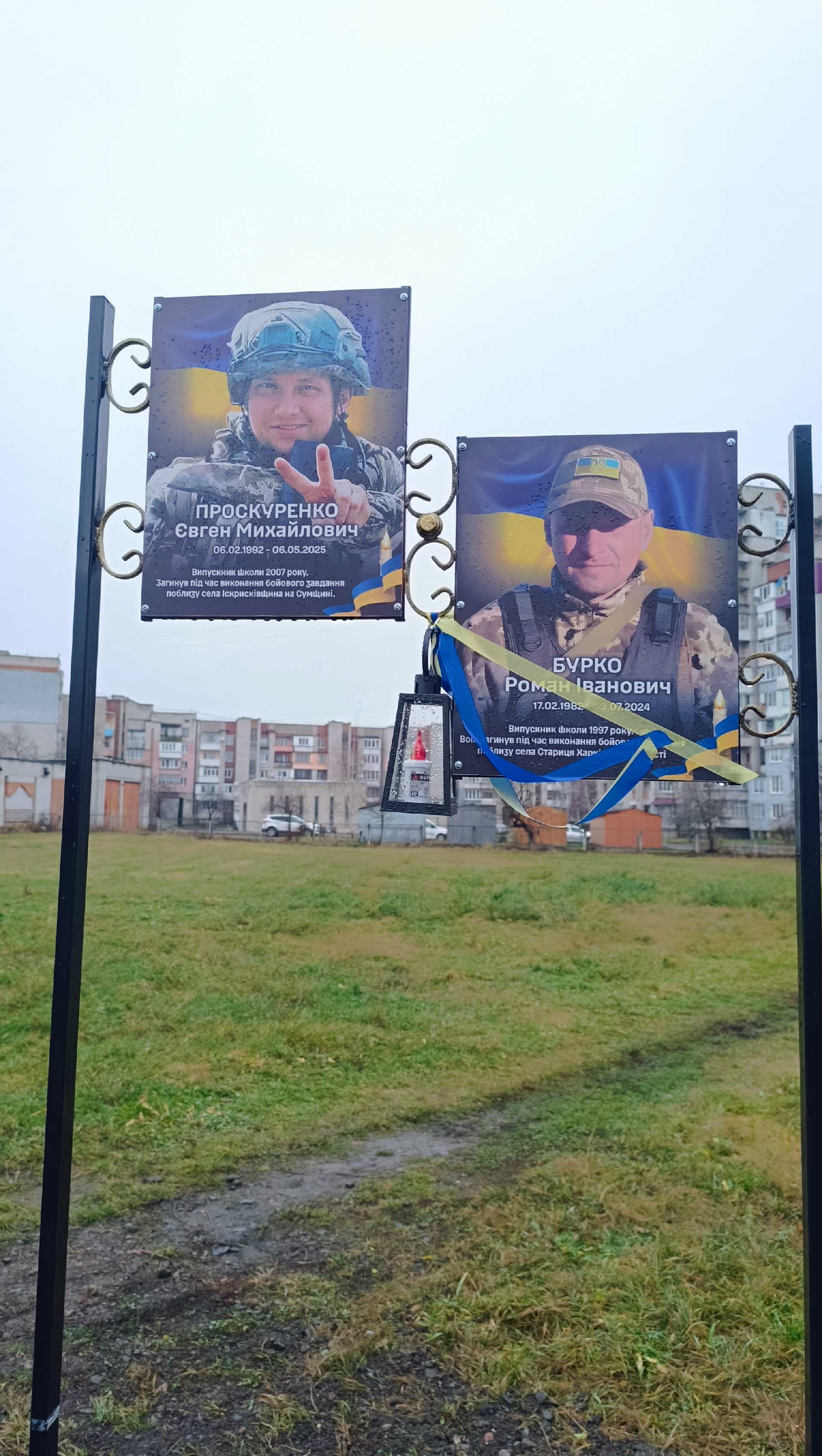 У переддень Збройних сил України в Гімназії №3 відбулося освячення на Алеї Героїв портретів випускників школи – Бурка Романа Івановича, Проскуренка Євгена Михайловича, які в часи російської навали безстрашно стали на захист рідної землі.
